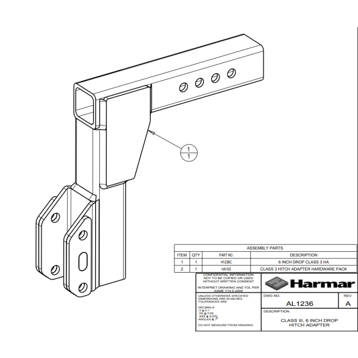 Harmar Class III Hitch Adapter - 6" (15.2 cm) Drop